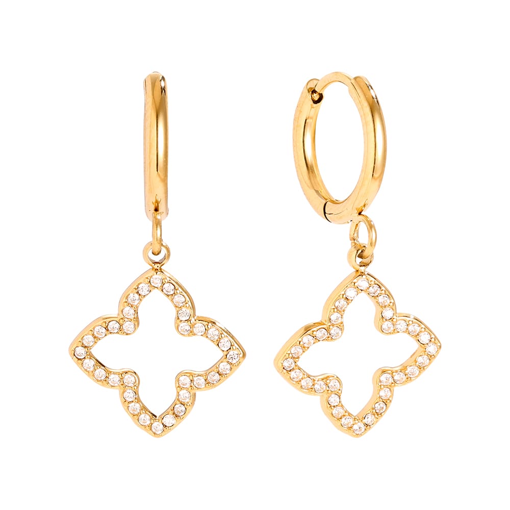 Elegante Creolen mit funkelnden Zirkonia-Kleeblättern als Anhänger. Zeitlos schön für jeden Tag und besondere Anlässe. Der perfekte Mix aus Eleganz und Glück.
