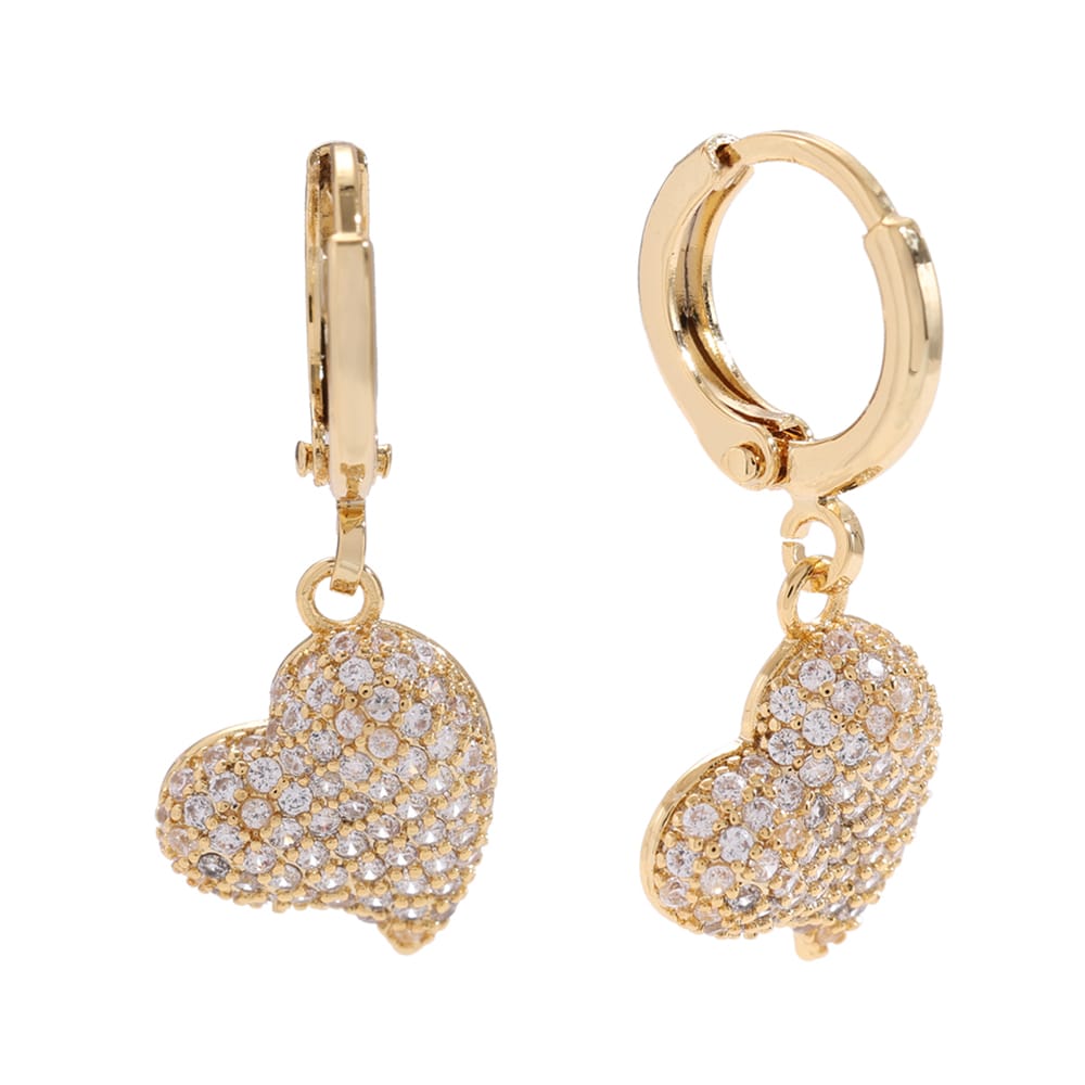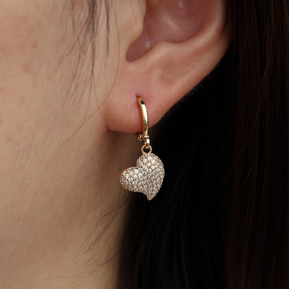 Romantische Creolen mit einem dreidimensionalen, vollständig mit funkelnden Zirkonia-Steinen besetzten Herz-Anhänger für einen glamourösen und liebevollen Look. Der gepflasterte Pavé-Besatz lässt die Herzen von allen Seiten strahlen und macht diese Ohrringe zum perfekten Statement-Accessoire. Ideal als Geschenk oder für besondere Anlässe, die ein Funkeln verdienen.